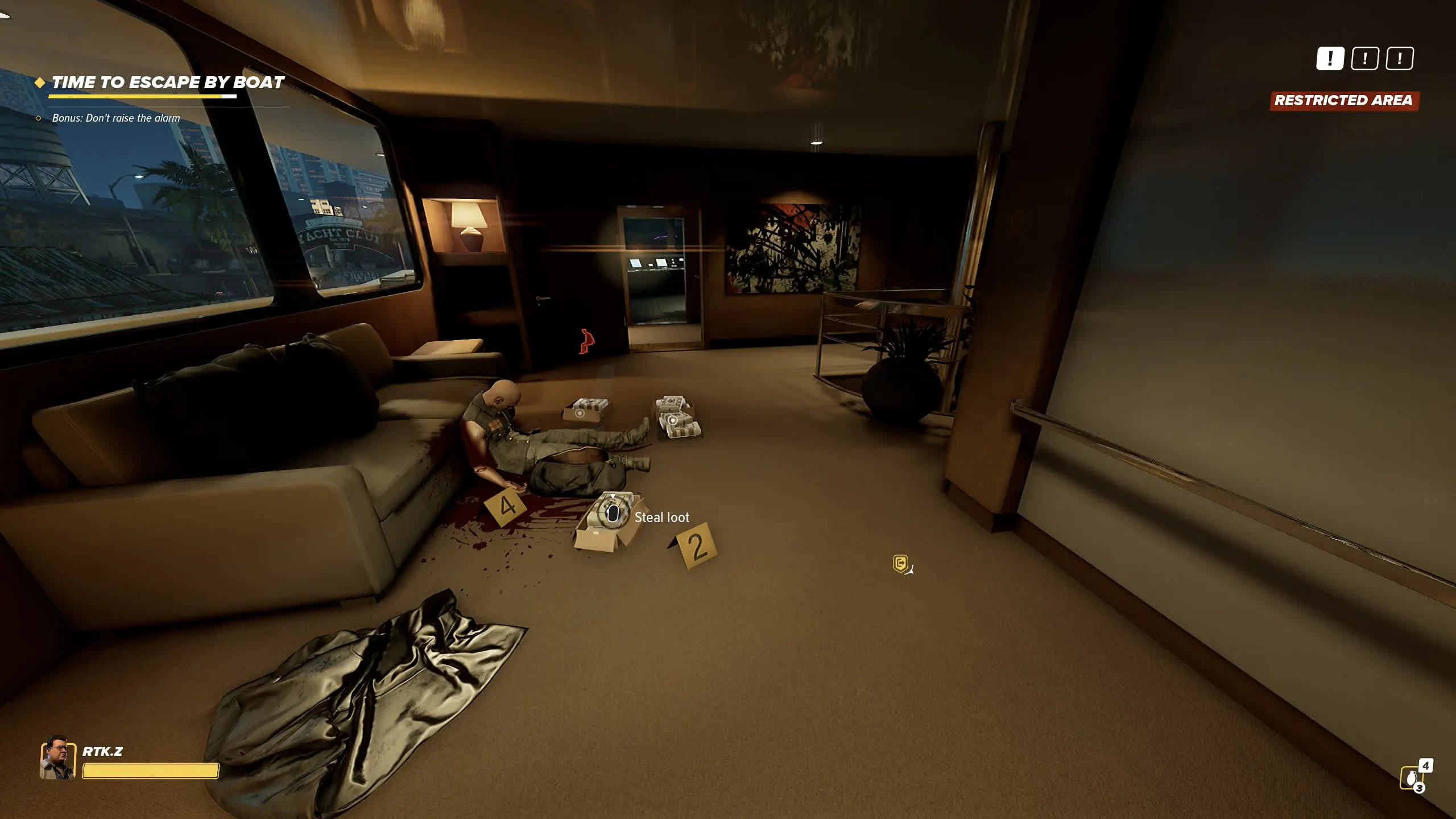 - If the alarm is triggered or the detectives arrive, the Zodiac leaves, and heisters must escape by land.